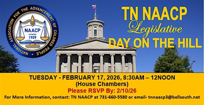 NAACP Members (Adults & Youth/College), partners and guest will meet with legislators to discuss issues crucial to their communitiesAgenda