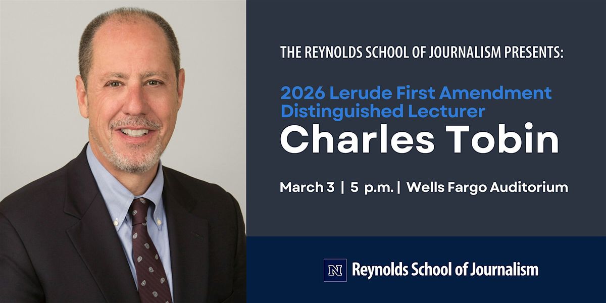 The Reynolds School of Journalism is pleased to present the 2026 Lerude First Amendment Distinguished Lecturer: Charles Tobin. The program will include a keynote address from Tobin, a First Amendment lawyer with Ballard Spahr Law Firm's media practice group, followed by a conversation and audience Q&A.