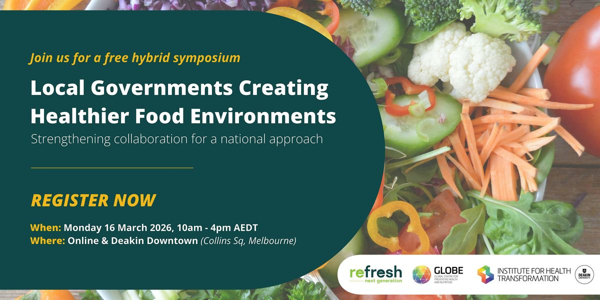 This free event is proudly brought to you by the Centre of Research Excellence in Food Retail Environments for Health in partnership with the (GLOBE) and the (IHT) at Deakin University.