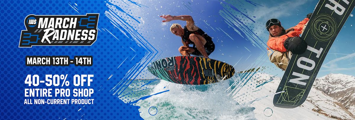 - Storewide 40% OFF: Friday and Saturday, March 13th–14th, take 40% OFF all non-current products. This includes boards, boots, ropes, life vests, and apparel from the industry’s top brands.