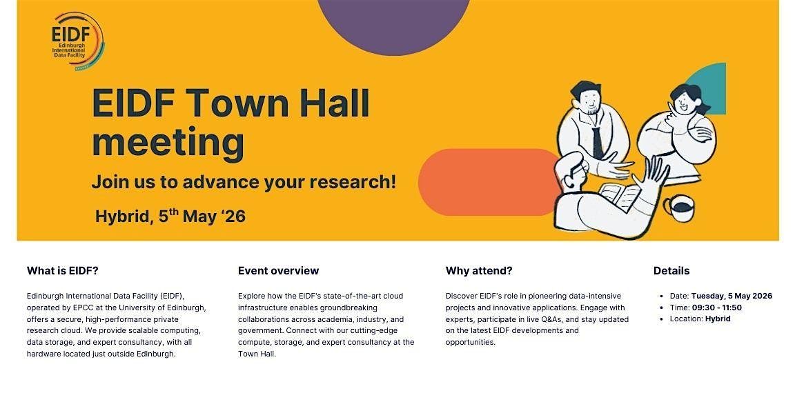 Intended audience: This session is open to private companies, academics, and public institutions, highlighting the versatility of our private research cloud. If youโre a current or prospective EIDF user, whether a Principal Investigator, data scientist, or data analyst, youโll get an inside look at everything the EIDF data science cloud offers. Newcomers can discover how to access and benefit from our resources, while returning users can find solutions to specific questions or challenges. Meet our experts, explore new partnerships, and learn how our cutting-edge infrastructure can advance your research and innovation.