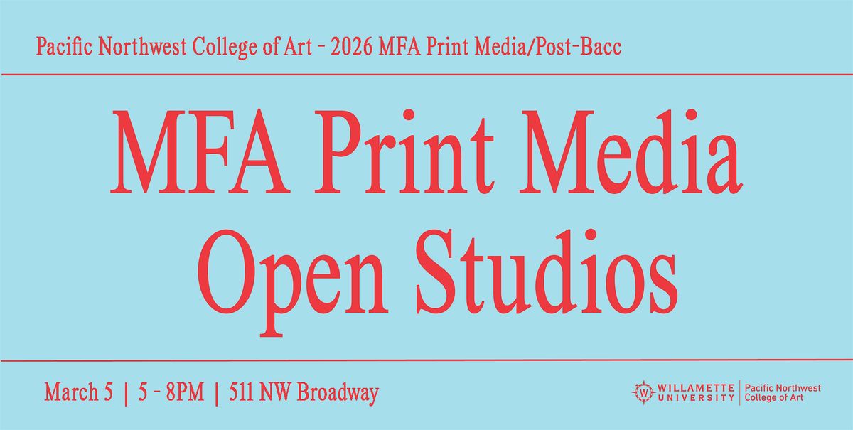 Every year PNCA’s graduate students invite the public into their studios and exhibition spaces for an evening filled with art, design and dialogue.PNCA's annual MFA Open Studios is an opportunity to come together with fellow artists, educators and community members to get a behind-the-scenes view of what PNCA’s emerging artists and designers have been working on. This event will feature work from current students in the MFA Print Media and Post-Baccalaureate program and will span a wide variety of media, forms, and concepts. Join us for an engaging evening of art, design, and community!