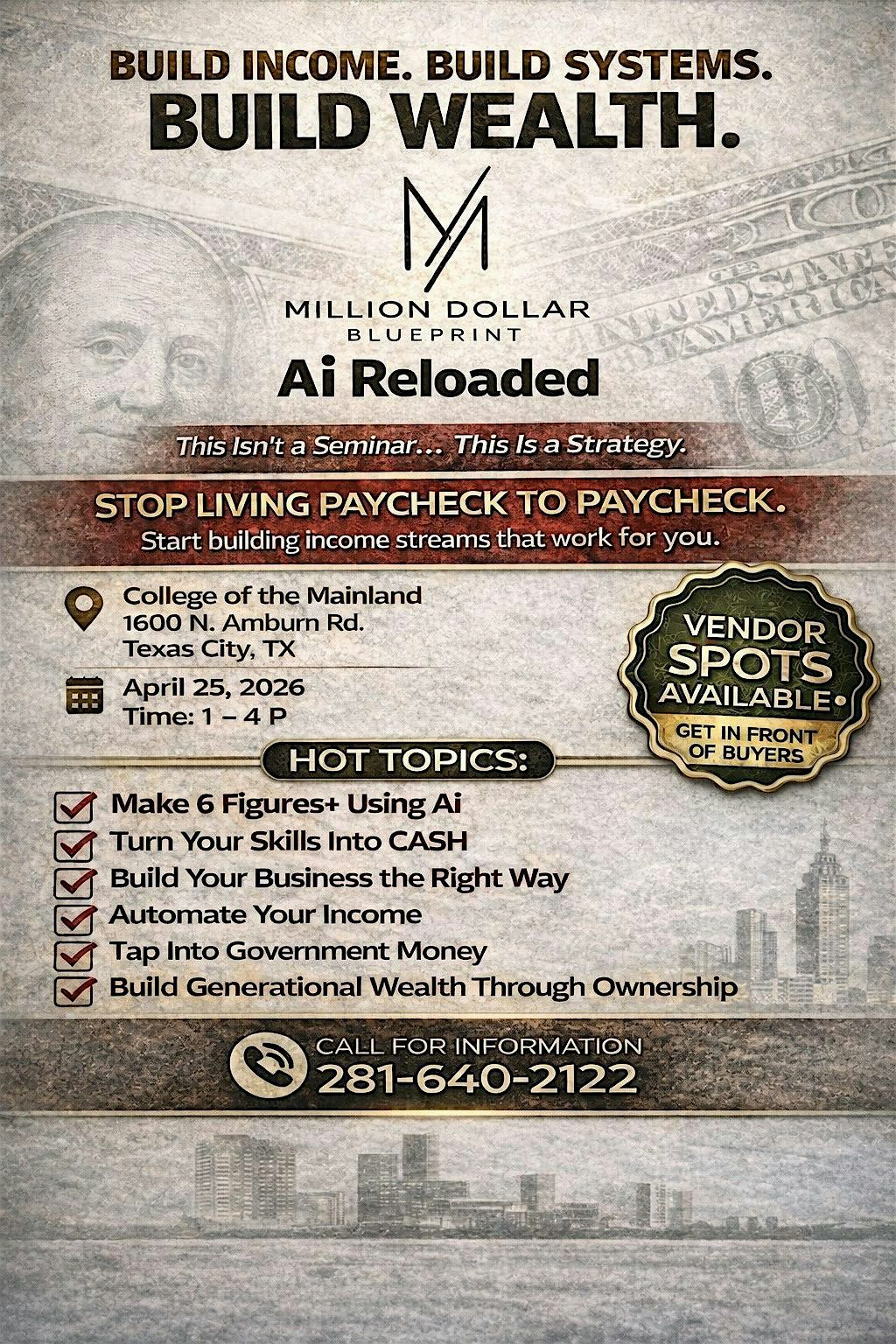 The 2026 Million Dollar Blueprint: AI Reloaded is not just an event; it’s a business and wealth-building experience designed for people ready to execute.