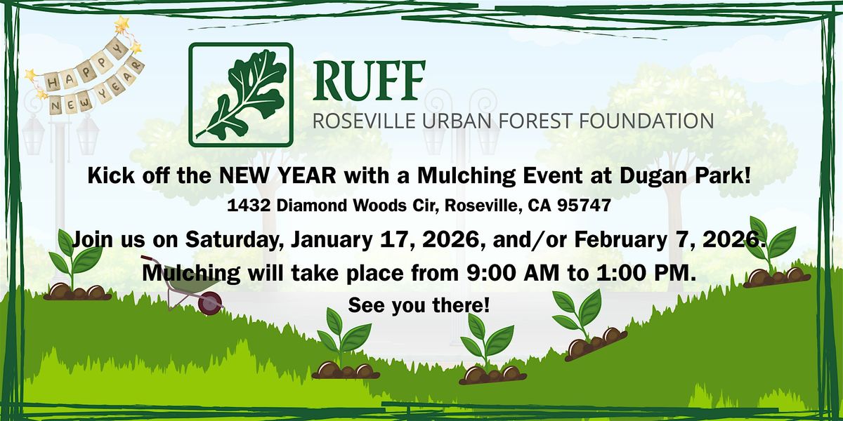 RUFF and the City of Roseville Open Space Division are excited to host several mulching events during the winter and early spring of 2026. These events help care for native trees planted by volunteers in 2022 and 2023—and we’d love for you to be part of it!