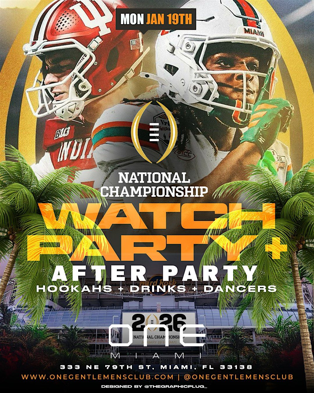 2026 CFB National Championship Watch Party & After Party at ONE Miami - hookah, drinks, dancers, and vibes all weekend long.About this Event