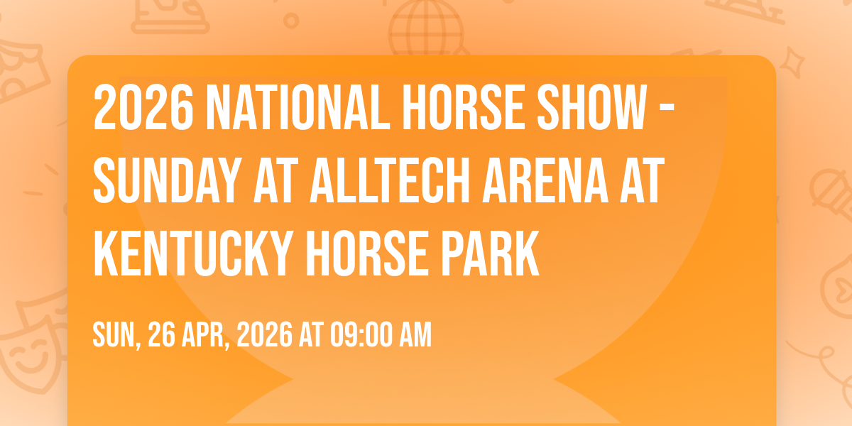 β¨ Discover the extraordinary at 2026 National Horse Show - Sunday at Alltech Arena at Kentucky Horse Park, where magic meets reality in ways you've never imagined! ποΈ Set in Alltech Arena at Kentucky Horse Park nestled in bustling Lexington, KY, this event promises to be a landmark occasion. π Taking place on April 26th, 2026 at 09:00 AM, it's going to create an atmosphere where every moment becomes a cherished memory. π Immerse yourself in an experience crafted with attention to every detail, designed to surprise and delight at every turn. They have worked tirelessly to ensure this event exceeds all expectations, bringing together elements of entertainment, innovation, and pure joy. π Don't miss your chance to be part of this remarkable journey!