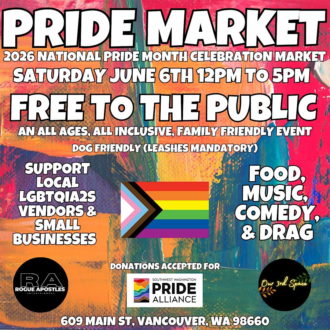 2026 National Pride Month Celebration Market. Support LGBTQIA2S Community Local & Small Business Vendors. Free To The Public.