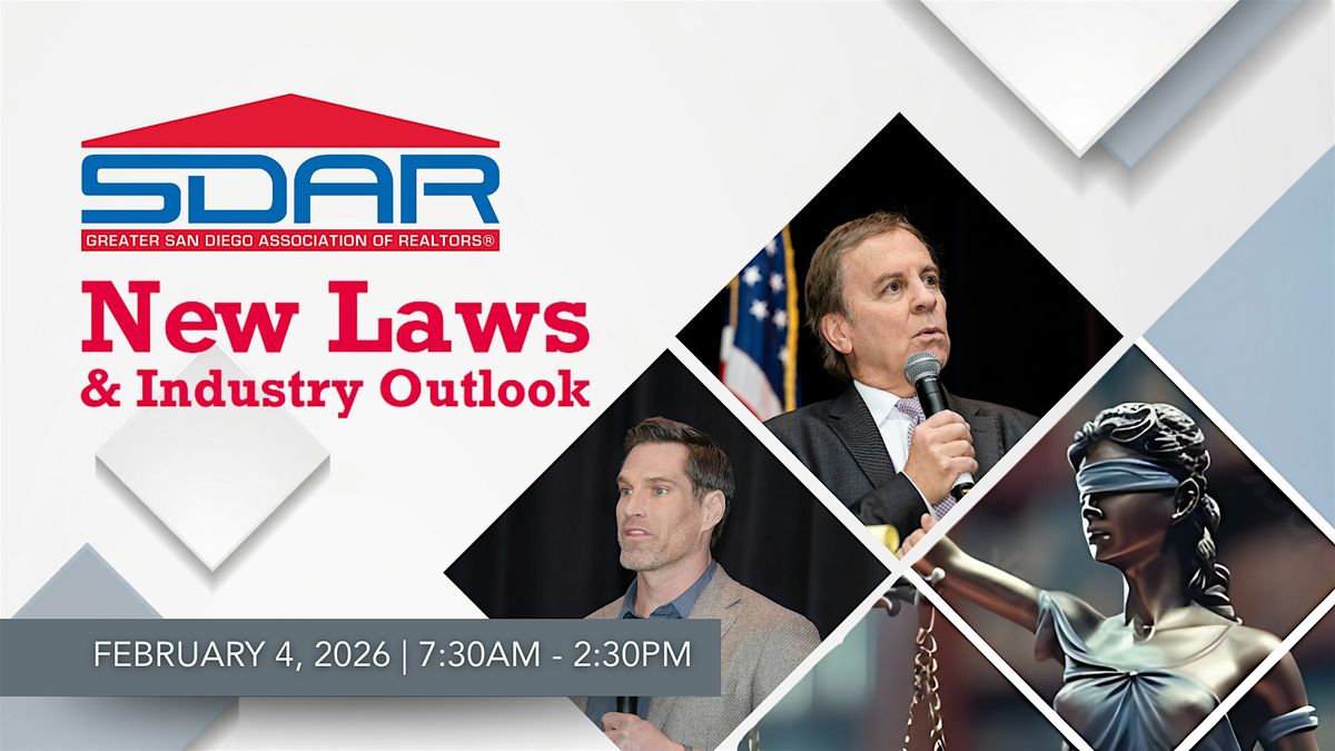 The Greater San Diego Association of REALTORS® invites you to the annual New Laws and Industry Outlook on Wednesday, February 4, 2026 at the The Legacy Resort Hotel & Spa in Mission Valley. This premier event will feature insightful presentations from key leaders shaping the real estate industry.