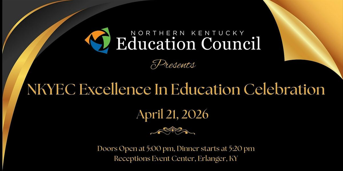 The Northern Kentucky region has a long history of supporting education and celebrating the vital role that educators, business leaders, and community partners play in ensuring our students are ready for college, career, and life. Continuing this tradition, the Northern Kentucky Education Council is proud to host the 2026 Excellence in Education Celebration. This annual event will be held on April 21, 2026, at Receptions Event Center in Erlanger, KY. As the premiere education event for the region, the dinner recognizes students, educators, community partners, and business leaders for their significant contributions to education. Awards presented for the evening will be the 2026 Golden Apple, AD Albright Teacher of the Year, Legacy Awards, Spirit of Determination, St. Elizabeth Healthcare Scholarship Student Awards, Lifetime Achievement Award, Extraordinary Staff Award and many, many more.