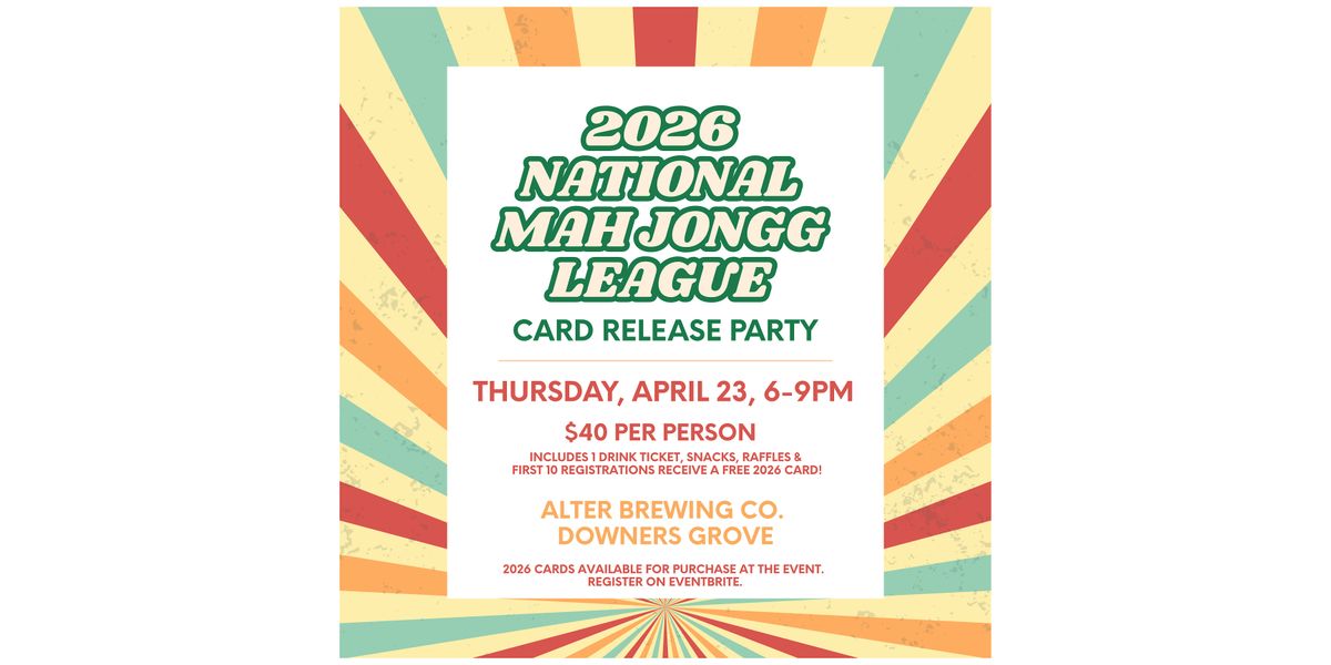 Join us as we kick off the release of the 2026 National Mah Jongg League card with an evening of play, learning, and community. This isn’t just open play — we’ll gather to explore the new card together, highlight key changes, discuss strategy, and share insights to help you feel confident navigating the 2026 patterns. We’ll begin with a brief overview and strategic highlights, then transition into gameplay using the new card in a supportive and social setting.