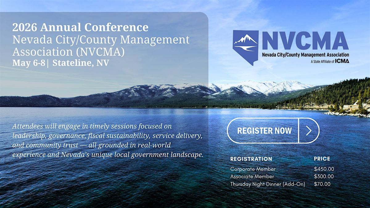 The 2026 Nevada City/County Management Association (NVCMA) Annual Conference is the premier professional development event for local government leaders in Nevada.