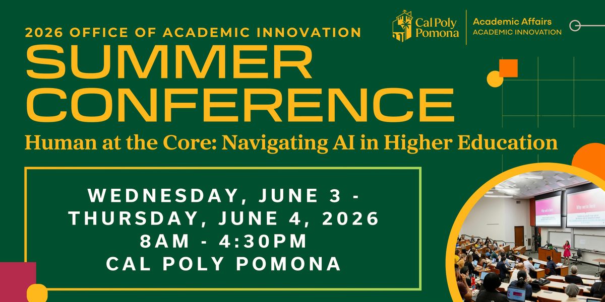 The Office of Academic Innovation Summer Conference brings together faculty, staff, and higher education leaders from Cal Poly Pomona and beyond for a two-day exploration of Human at the Core: Navigating AI in Higher Education.