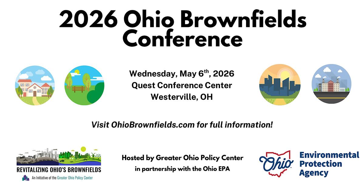 The Greater Ohio Policy Center (GOPC), in partnership with the Ohio EPA, will host the 2026 Ohio Brownfields Conference. The conference will be a one-day event, held on Wednesday, May 6th, 2026 from 7:30am to 4pm.