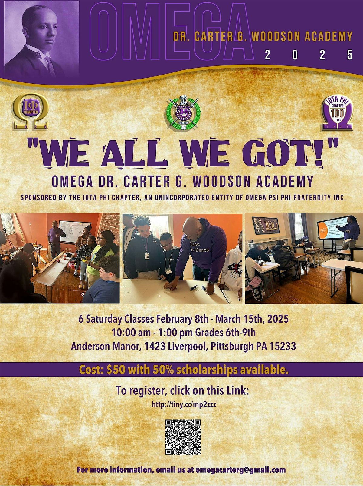 The Omega Dr. Carter G. Woodson Academy is coordinated by the Men of the Iota Phi Foundation. The academy has been named in honor of the work, life, and ideas of Dr. Carter G. Woodson. Dr. Woodson was the Founder of the Association for the Study of Afro American Life and History, the Father of Black History.