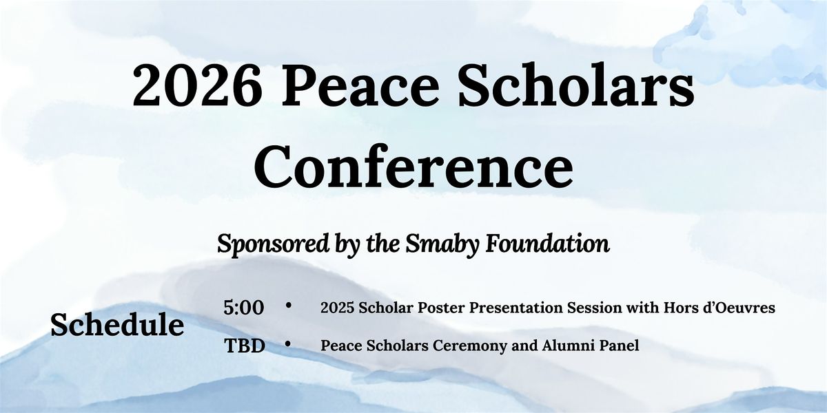 Join us for a peek at some of our current and future leaders with a lens of peace and dialogue, and connect with the Peace Scholars community. Promote the program's mission of peace and dialogue and meet the Peace Scholars community. Poster presentations by the 2025 Scholars will lead into a panel of program alumni. Refreshments and appetizers provided.