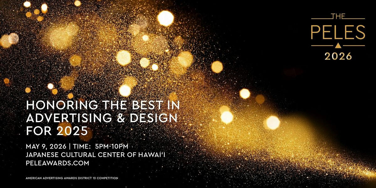 Join us on Saturday, May 9, 2026, for the 2026 Pele Awards Show at the Japanese Cultural Center of Hawai'i. Celebrate Hawai‘i’s best in advertising and design as we honor the most outstanding creative work from the 2025 calendar year. Don’t miss this unforgettable evening of recognition, inspiration, and aloha!