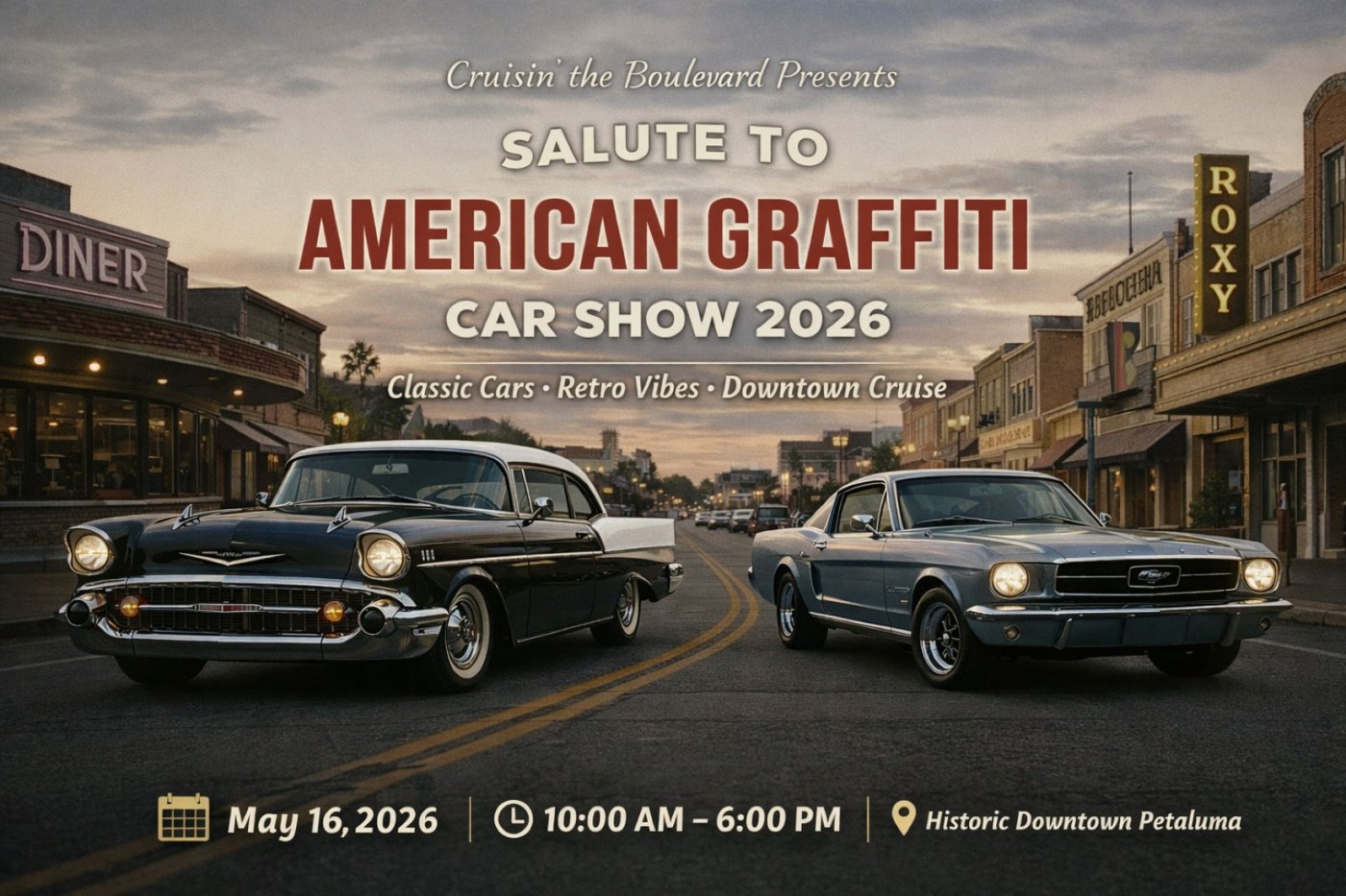 Cruisin' the Boulevard invites American model cars and trucks 1972 or older to join us May 16th for the annual Salute to American Graffiti Car Show. This event features show parking on the streets of historic Downtown Petaluma, the same streets featured in the film, a cruise of a near 2 mile loop along one of Petaluma's most historic neighborhoods, old time live radio dj, and community activities.