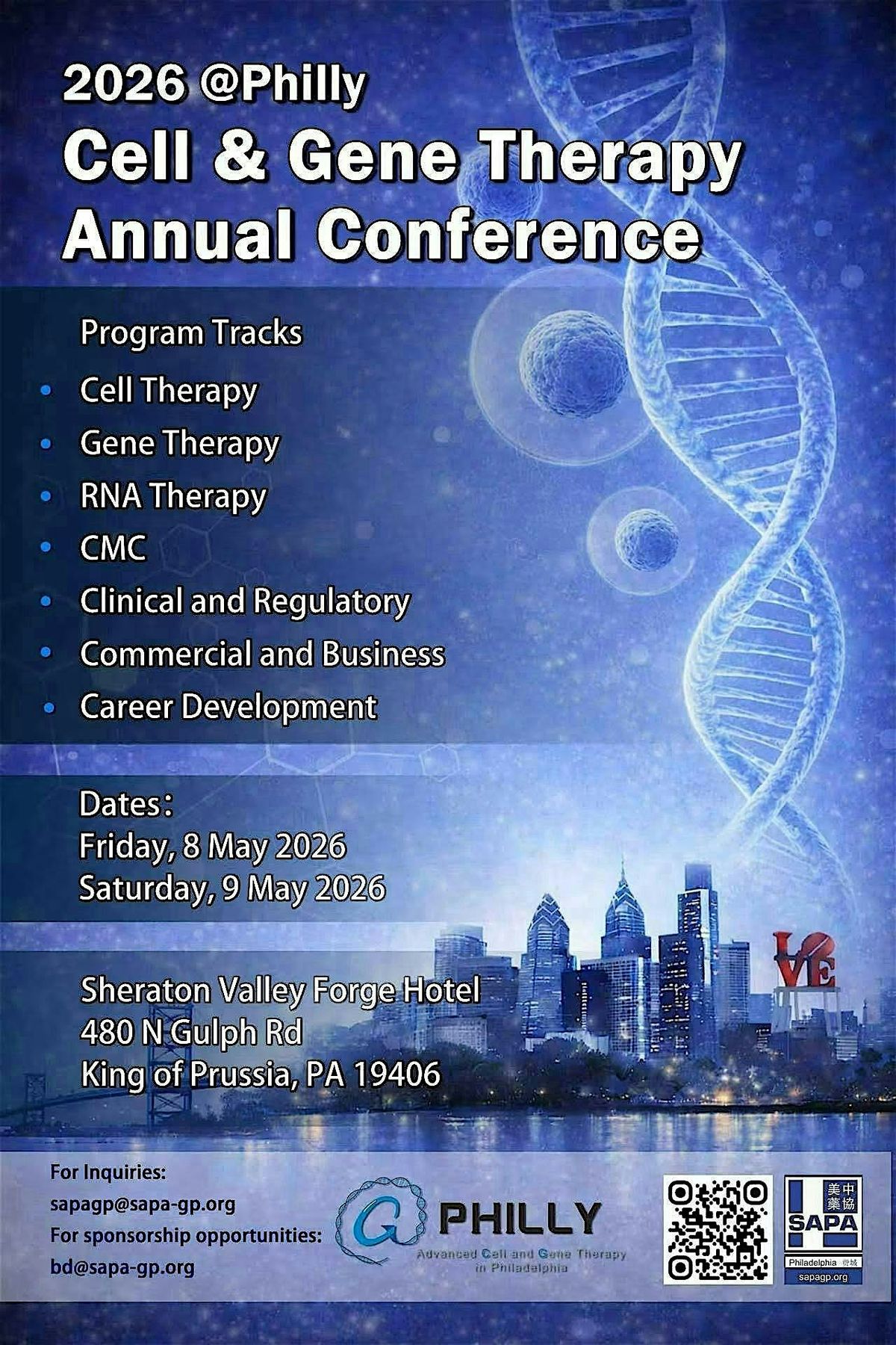 We are delighted to invite you to attend the upcoming 2026 Philadelphia Cell & Gene Therapy (CGT) Conference (https://atphilly.org/). This seminal event is scheduled for May 08-09, 2026, at the Sheraton Valley Forge Hotel, located at 480 N Gulph Rd, King of Prussia, PA 19406.