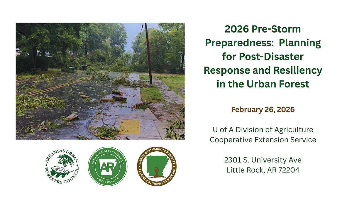 This workshop is sponsored by the Arkansas Urban Forestry Council and made possible through grant funding provided by the USDA Forest Service in partnership with the Arkansas Department of Agriculture.