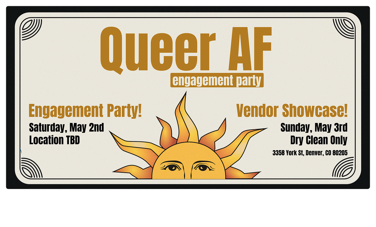 Welcome to the Queer AF Engagement Party: An Unconventional Wedding Showcase! Join us for a celebration of love, diversity, and creativity. This 2 DAY event is all about breaking traditional norms and embracing individuality. Get ready to be inspired by unique wedding ideas, meet talented vendors, and connect with like-minded couples. Whether you're planning your big day or simply love all things weddings, this is the perfect place to be. Come as you are and let's toast to love in all its forms!
