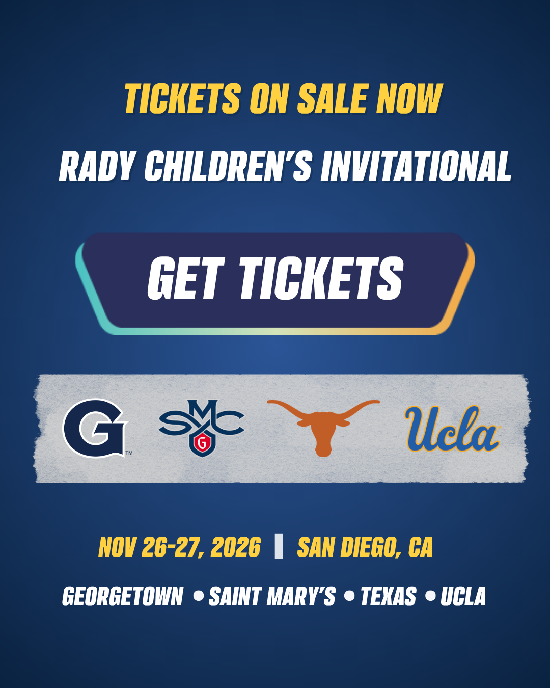 🎉 Welcome to 2026 Rady Childrens Invitational at Jenny Craig Pavilion, where the impossible becomes possible and dreams take flight! 🏛️ Join us at Jenny Craig Pavilion in the heart of San Diego, CA for an event that will redefine your expectations. 📅 On November 27th, 2026 at 12:00 PM, witness the transformation of space and time into something truly magical. ✨ It's a curated experience combining the best of innovation, entertainment, and community spirit, creating moments that will be remembered for years to come. Whether you're a first-time visitor or a seasoned enthusiast, prepare to be amazed. 🎊 Book now to ensure your place in this unforgettable experience!
