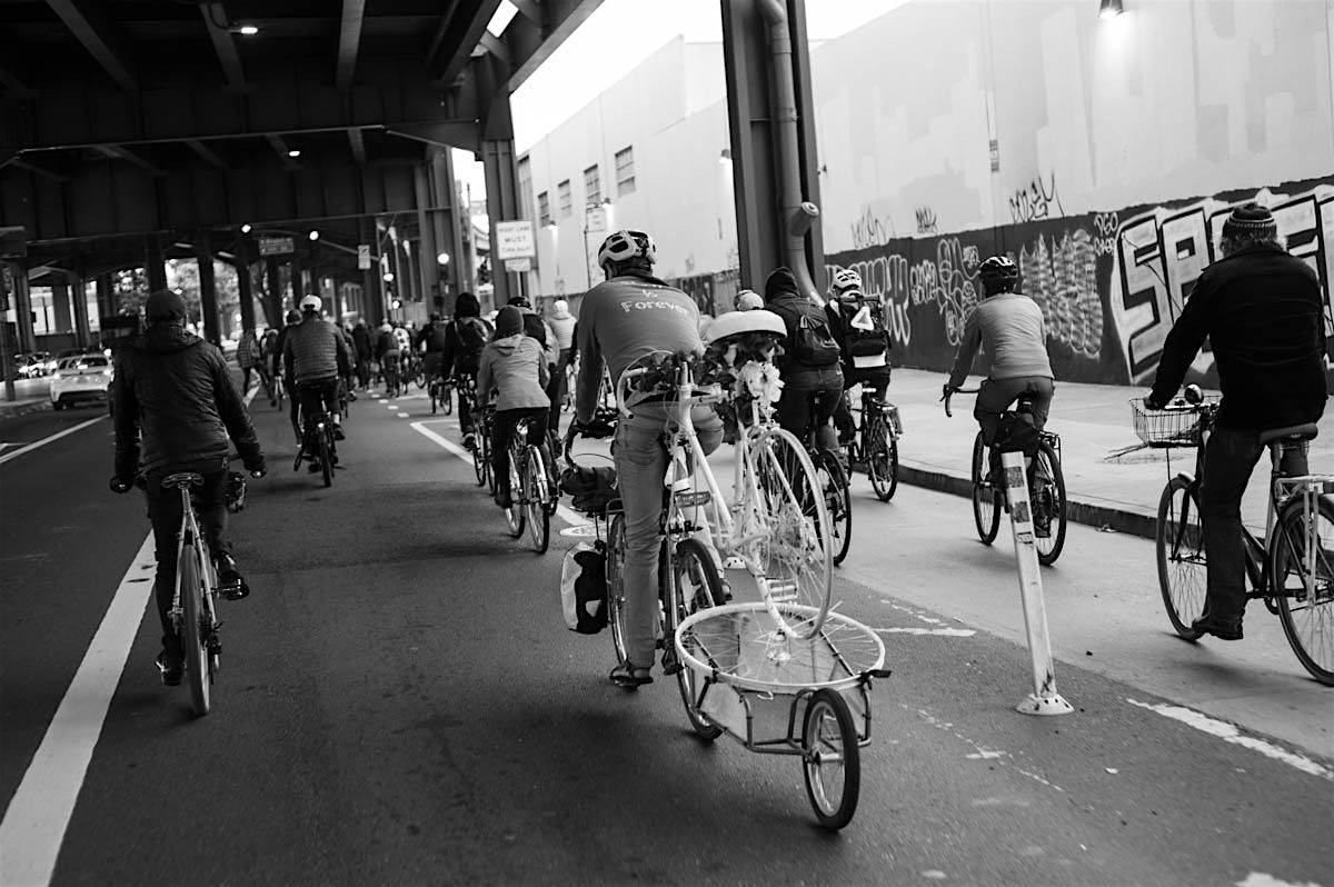 This silent group ride is suitable for all ages and abilities. During the ride, we will stop to lay flowers and observe a moment of silence at the sites of recent biking fatalities and honor those we have lost while spreading the message that people who bike represent precious lives. Also, we will stop at South Park to honor the lives of those we lost in our bike messenger community and others. We will listen to some reflections from family members and friends of those we lost at some of the stops. We are all deeply affected when we lose someone in our community, and together, we will ride, remember, reflect, and heal.