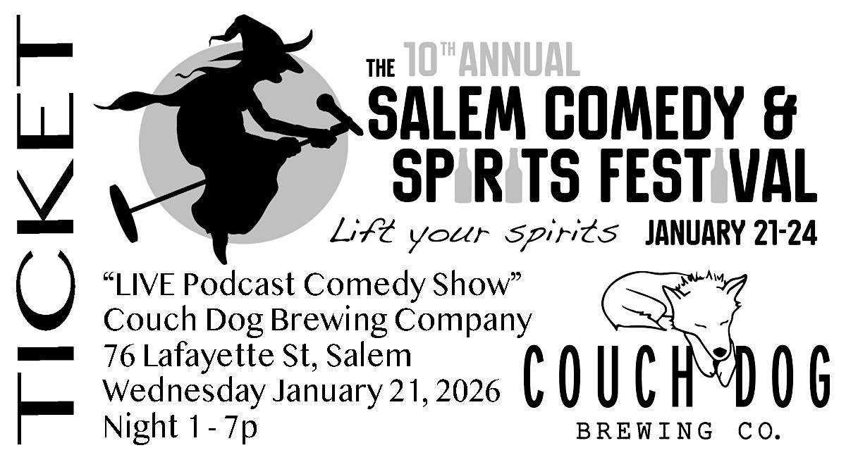 The 10 Year Salem Comedy & Spirits Festival kicks off its first night with Beer, Comedy, and Radio Irregardless a LIVE podcast. Couch Dog Brewing joins the Fest for an amazing opening night!