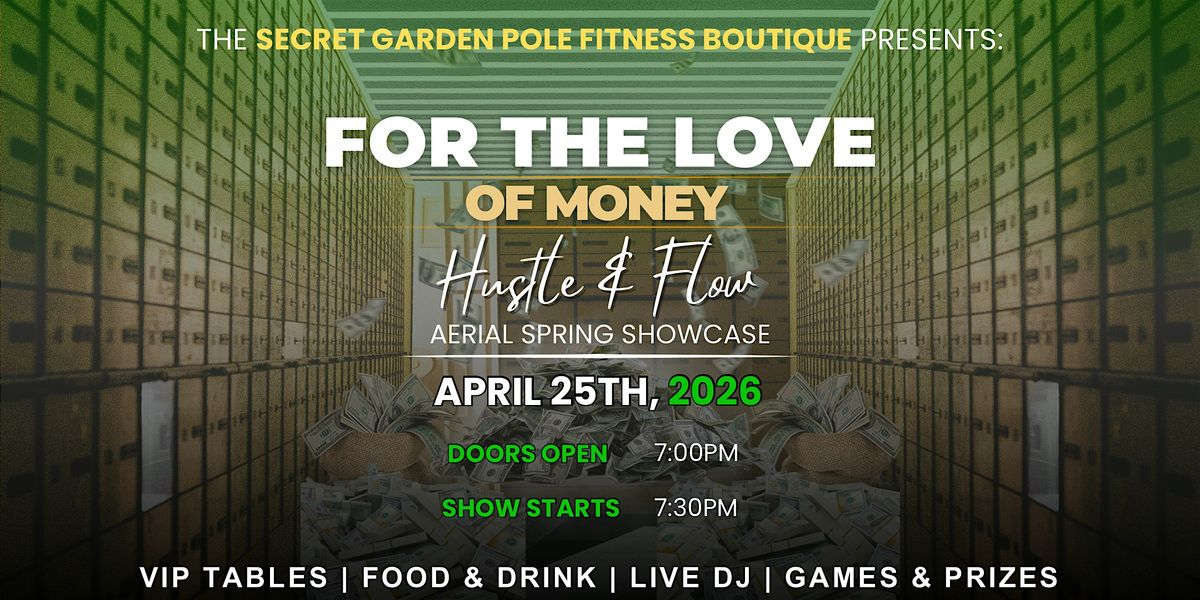 Welcome to Hustle & Flow! Get ready to be dazzled at our annual spring showcase at Secret Garden Pole Fitness Boutique. Join us for an evening filled with amazing performances. This is the ONLY spring showcase you need to attend. Mark your calendars, purchase a table or ticket, and come celebrate the season with us!