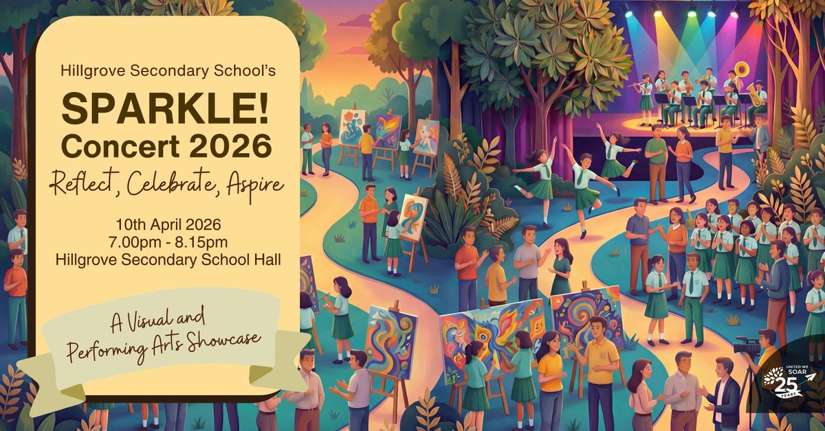 SPARKLE! is Hillgrove Secondary School’s biennial aesthetics showcase, celebrating excellence across the Visual and Performing Arts. The event brings together seven CCAs—Malay Dance, Art Club, Modern Dance, Concert Band, Drama Club, Media Club and Choir—for an evening of artistic expression and creativity. Held in conjunction with the School’s 25th Anniversary, this year’s SPARKLE! (2026) reflects Hillgrove’s journey in nurturing talent and passion through the arts. Guided by the theme “Reflect, Celebrate, Aspire,” the showcase affirms the school’s continued commitment to inspiring students to pursue artistic excellence and growth.