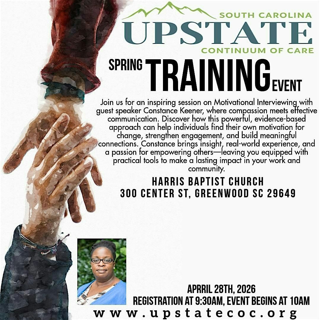 Join us for an inspiring session on Motivational Interviewing with guest speaker Constance Keener, where compassion meets effective communication. Discover how this powerful, evidence-based approach can help individuals find their own motivation for change, strengthen engagement, and build meaningful connections. Constance brings insight, real-world experience, and a passion for empowering others—leaving you equipped with practical tools to make a lasting impact in your work and community. Lunch will be served as well. Please let us know of any dietary restrictions.