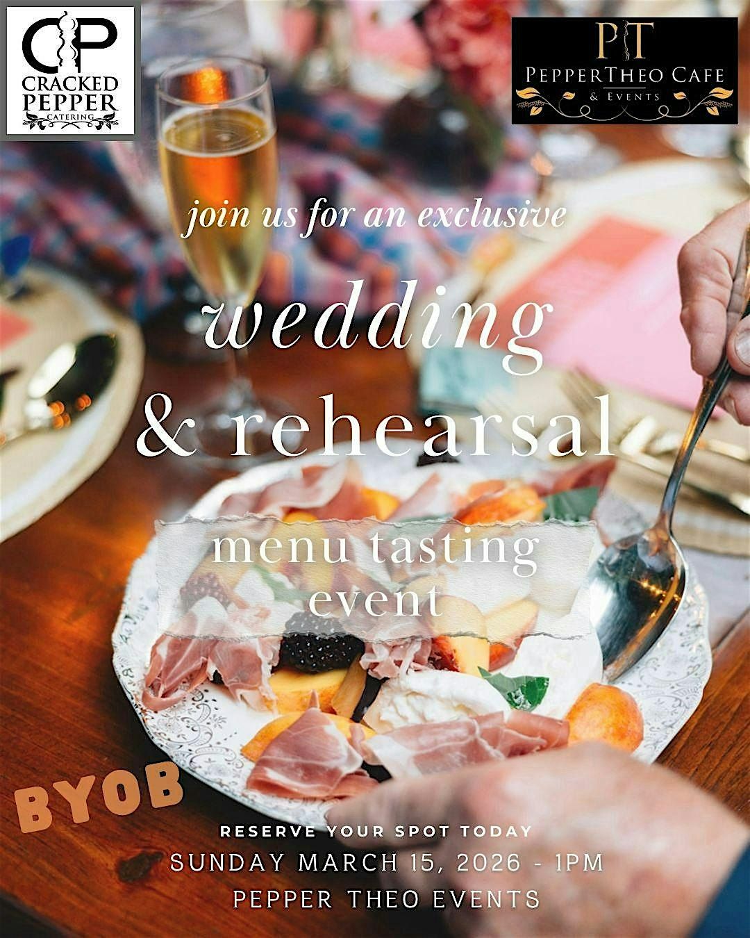Get ready for a delicious journey at our in-person tasting event, exclusively for Weddings and Rehearsals! Explore the flavors of Cracked Pepper Catering's menus, designed to make your big day unforgettable. Join us to sample a variety of tasty dishes, chat with the chef and staff, and find your perfect menu. Bring your favorite beverage to enjoy!