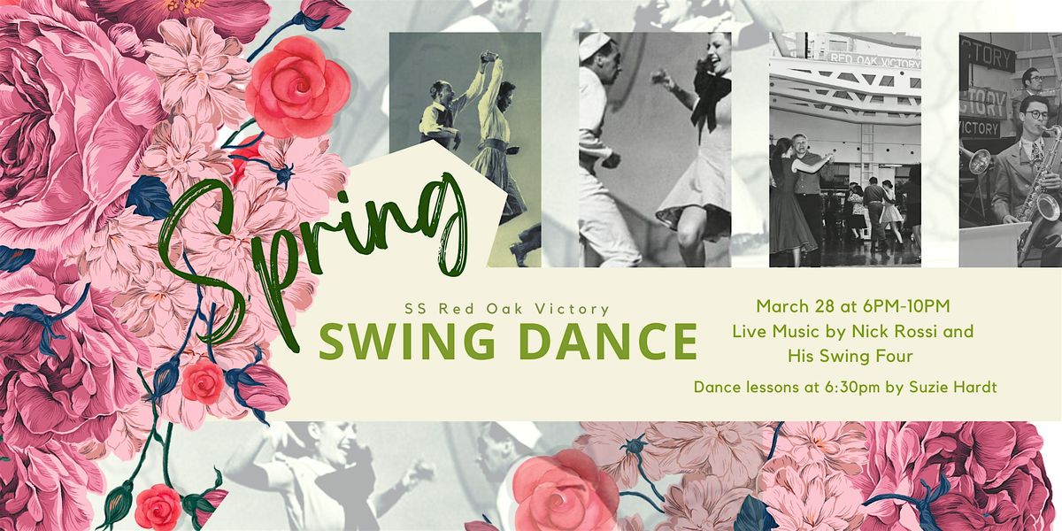 Red Oak Victory's first big event for 2026 will take place on March 28! Our Spring Swing will feature live 30s-40s swing music from the very popular Bay Area performers, Nick Rossi and His Swing Four preceeded by a dance lesson from Suzie Hardt of the Hidden City Ballroom in Point Richmond! We will be serving beer, wine, and cocktails (for those over 21, of course) in our Tiki Bar Lounge. If you get hungry, we'll have hotdogs and other snacks available for purchase from the ship's galley. And if you get tired of dancing, take a tour of our historic, World War II ship.