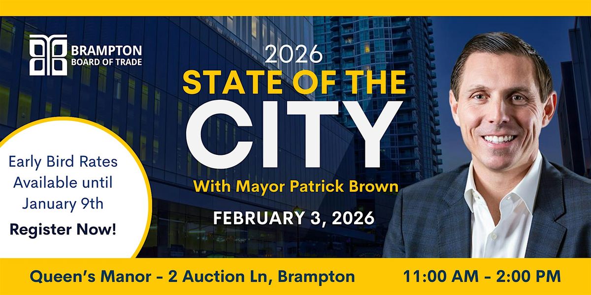 Hear directly from Mayor Patrick Brown as he delivers the State of the City Address, offering an insider’s perspective on Brampton’s growth trajectory, innovation strategy, and economic outlook for the year ahead. The event also features insights from the Brampton Economic Development Office and the presentation of the Mayor Patrick Brown’s Recognition of Business Excellence Award, celebrating a dynamic business that is driving prosperity and community impact.