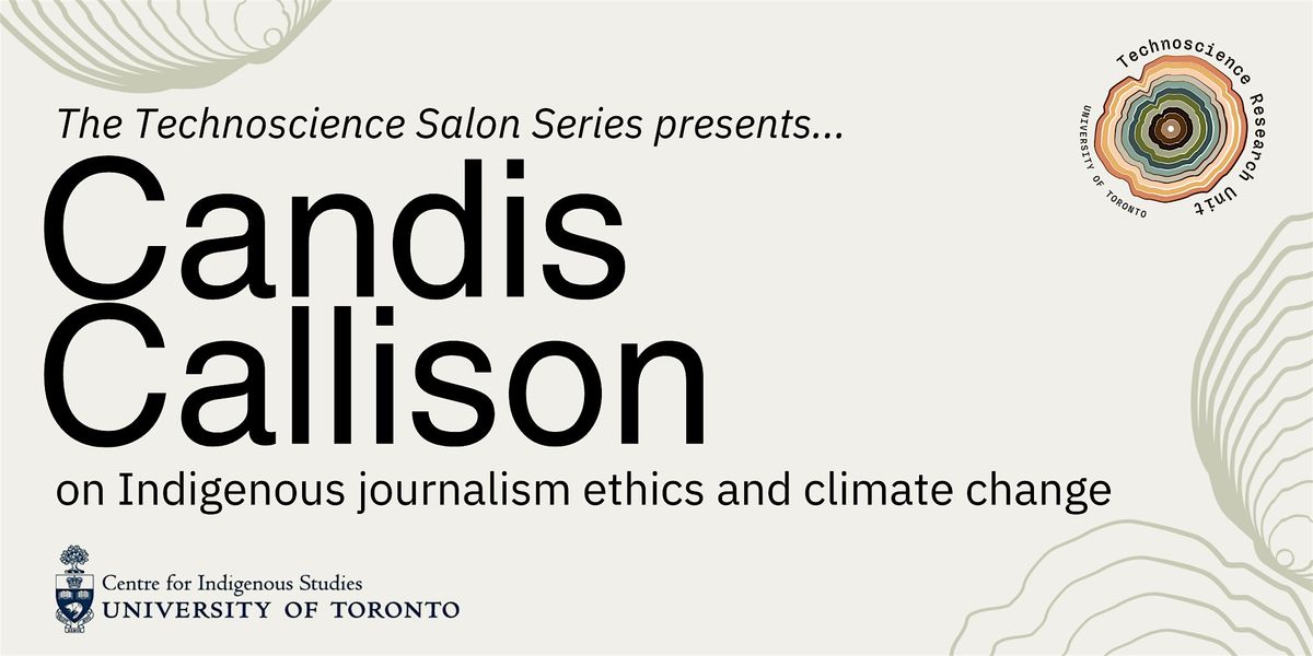 Join us for Technoscience Salon featuring Dr. Candis Callison(Tałtan), the Canada Research Chair in Indigenous journalism, media, and public discourse, and a Professor jointly appointed in the School of Public Policy and Global Affairs, and the Institute for Critical Indigenous Studies. She is also an associate faculty in the School of Journalism, Writing, and Media. Her research and teaching are focused on changes to media practices, the rise and persistence of Indigenous journalism on digital platforms, journalism ethics, the role of Indigenous and environment-focused social movements in public discourse, and understanding how climate change becomes meaningful for diverse publics.
