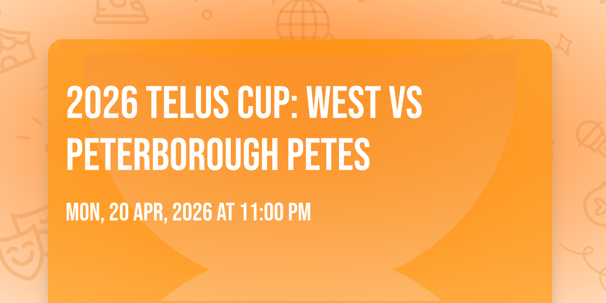 π Location: 44.2894, -78.3142π Welcome to 2026 TELUS Cup: West vs Peterborough Petes, where dreams come alive and possibilities are endless! ποΈ Join us at Peterborough Memorial Centre in the heart of Peterborough, ON for an event that defies expectations. π On April 20th, 2026 at 11:00 PM, be part of something truly extraordinary as we bring together innovation, entertainment, and pure magic. β¨ Every aspect has been carefully designed to ensure an unforgettable experience for all our guests. Whether you're seeking adventure, inspiration, or simply a break from the ordinary, this event promises to deliver beyond your wildest dreams. π Prepare for a journey into the extraordinary!