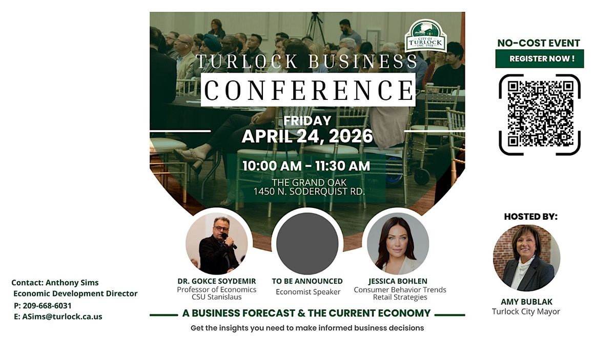 The 2026 Turlock Business Conference will provide a comprehensive business forecast and insights into the current economic landscape. Featuring speakers with expertise in economics, forecasting, retail analytics, and finance, the conference will deliver valuable information to help the local business community navigate today’s economy and prepare for what’s ahead.