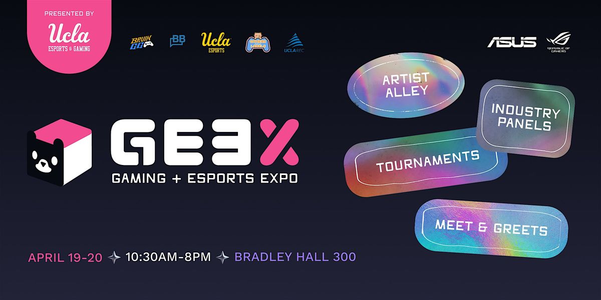 The UCLA Gaming & Esports Expo (GEEX) is a 2-day gaming expo hosted by UCLA Recreation that celebrates gaming and competitive gaming culture on-campus! In partnership with ASUS Republic of Gamers, the expo features a great list of on-site engagements to bring together an all-in-one experience for every gamer at UCLA! Participate in attendee gaming tournaments, compete in trivia and cosplay contests, learn from industry leaders in exclusive panels, and win big in raffles and giveaways!