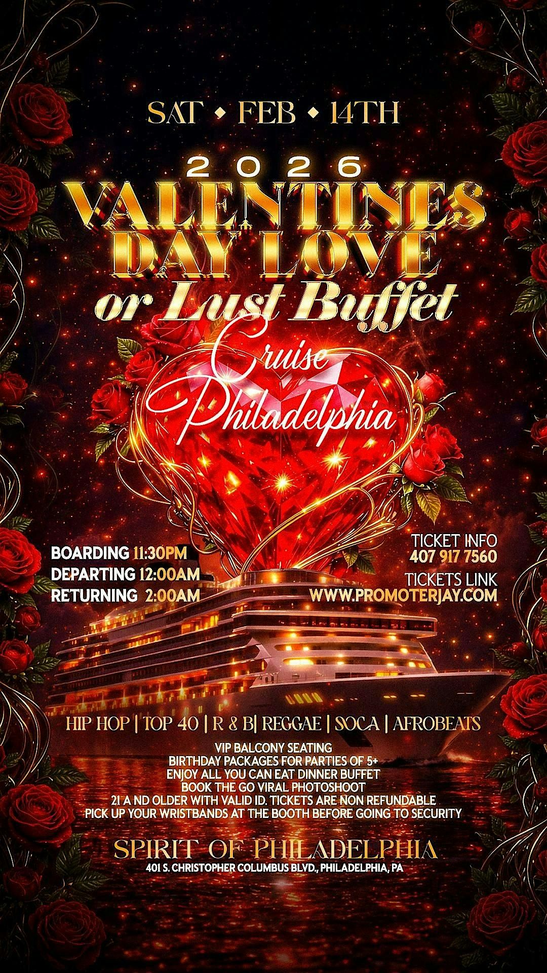 Ladies and Gentlemen of Philadelphia. This is the grand daddy of Valentine's Day Dinner Cruises aboard the plush Spirit of Philadelphia. Cruise the Delaware river aboard this 5 Million-dollar vessel in style. This is the number 1 Valentine's Day Dinner Cruise near You. Get your tickets in advance because we will run out.