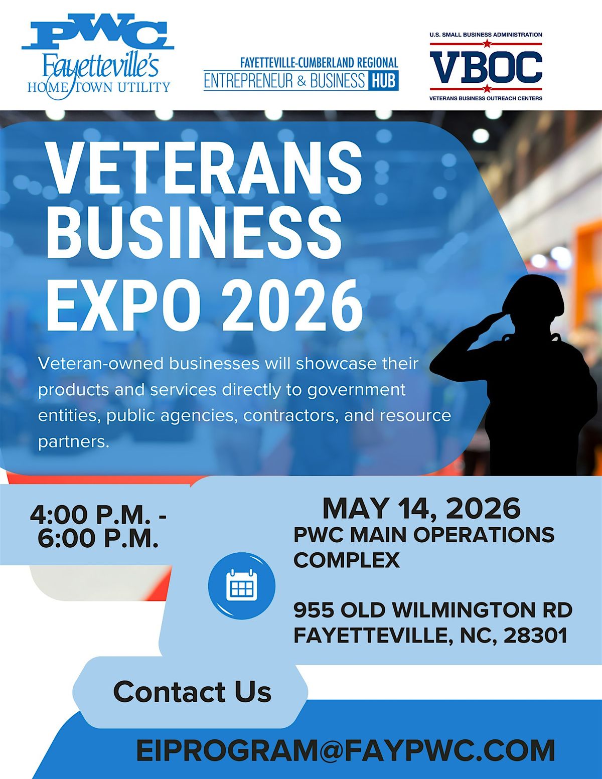 Hosted at the PWC Main Operations Complex in Fayetteville, NC, this event is designed to strengthen relationships, create contracting opportunities, and elevate veteran entrepreneurs in our region.