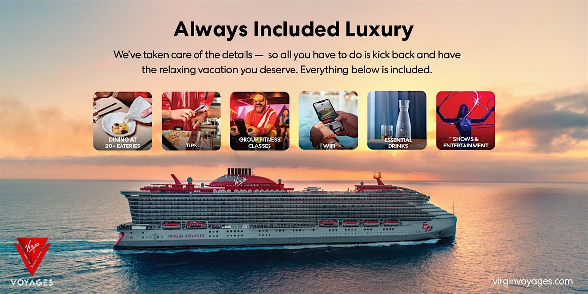 Join us for an unforgettable experience at Terminal V - Virgin Voyages! Get ready to set sail on a journey like no other with fellow cruise enthusiasts. This in-person event promises fun, relaxation, and new friendships. Don't miss out on this opportunity to create lasting memories aboard a luxurious Virgin Voyages ship. Book your spot now!