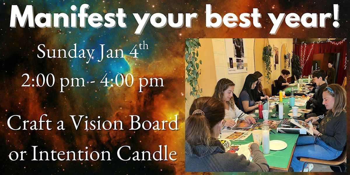 Spend a meaningful afternoon in community as you reflect on your aspirations and bring them to life through creative expression. We'll provide all the materials you need—magazines, art supplies, candles, and guidance—so you can focus on what matters: getting clear on what you want to call into your life this year.