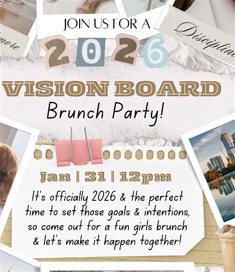 Join us for a fun and inspiring Vision Board Brunch Party this Saturday in January 2026 at 12 PM. Your ticket includes all vision board supplies—just bring your goals and creativity. Food and drinks will be available for purchase separately, so you can brunch while you build your vision for the year ahead. 🥂💭