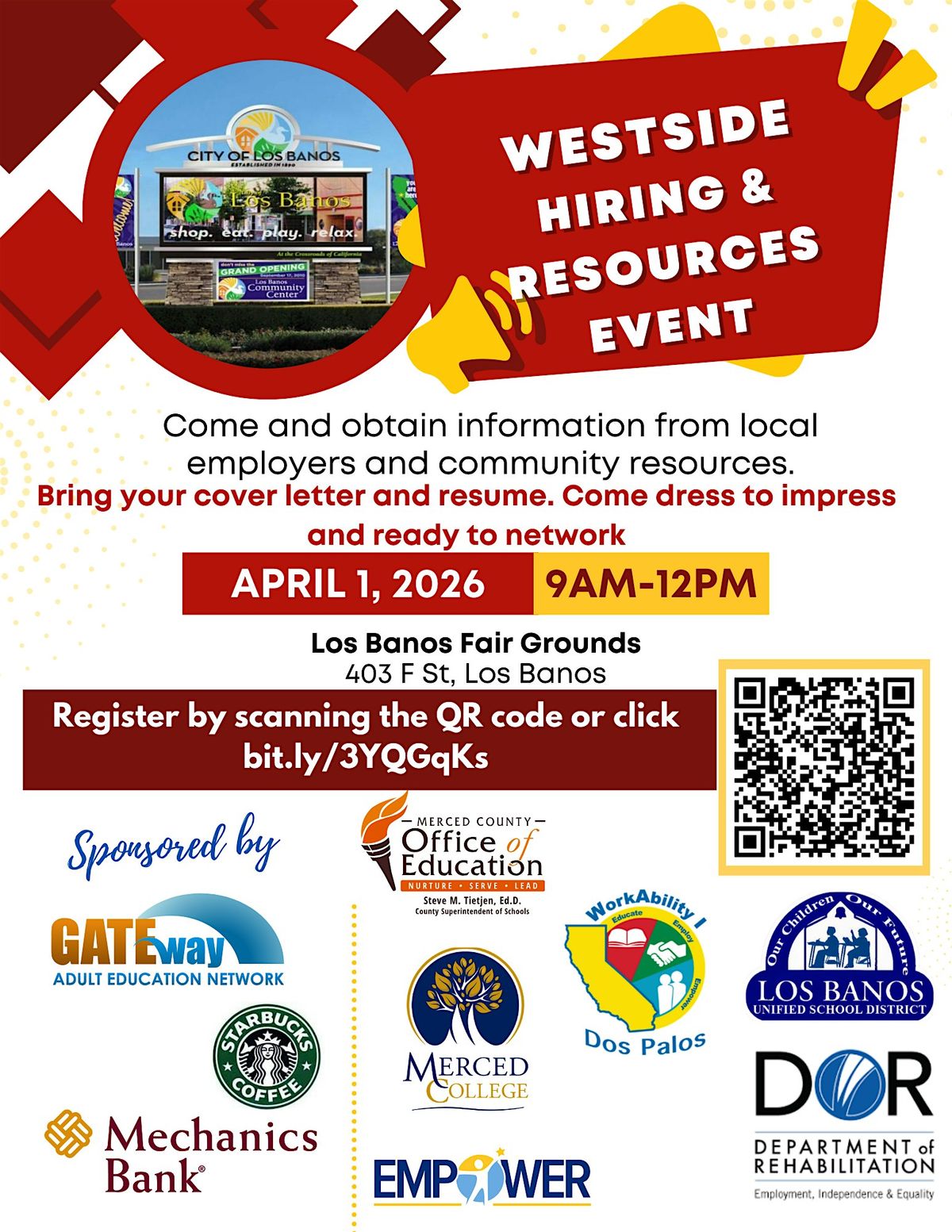 Welcome to our third annual West Side Hiring Event. This event is a collaboration and partnership with Gateway Adult Education Network (GAEN), Merced College, and Dos Palos WorkAbility program