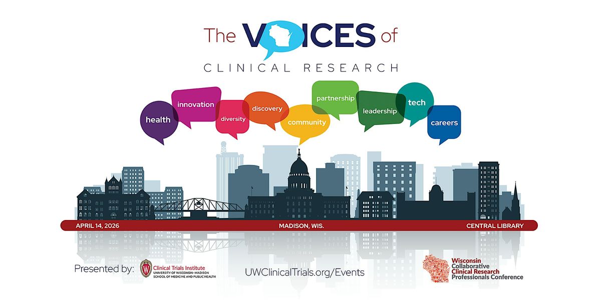 Join others who have a shared interest in advancing clinical research and improving health outcomes in our state and beyond! The conference will be held April 14, 2026 at the Madison Public Library - Central. The event will bring together the “Voices of Clinical Research,” participants, researchers, industry partners, academic health centers, students, and community organizations who collectively work to advance clinical research.