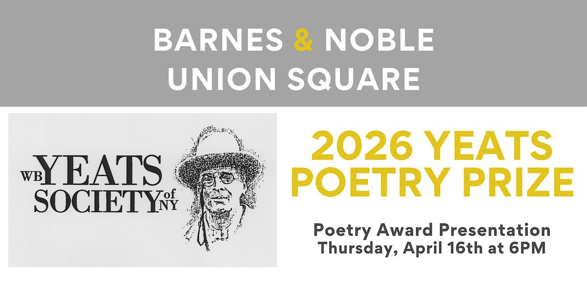 Join in New York City on Thursday, April 16th, 2026 at 6PM as we welcome this year's judge, two-time New York Foundation for the Arts poetry fellow, Joseph O. Legaspi, and the winners of the 2026 Yeats Poetry Prize, sponsored by the WB Yeats Society of NY!