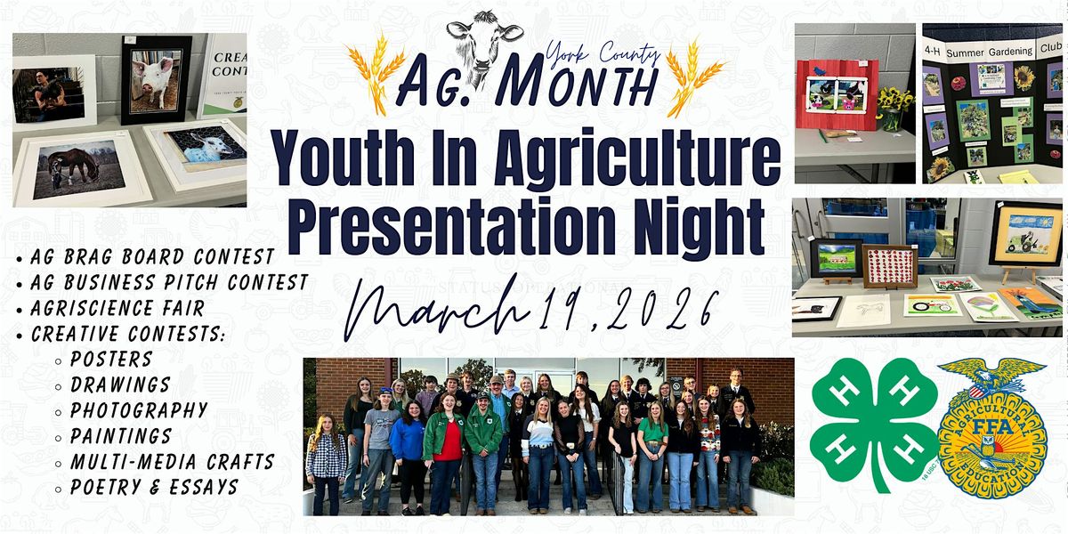 1. All entries must be dropped off at the York Extension Office (120 N. Congress St, York, SC 29745) by March 17th at 5:00 PM. Please communicate with York County 4-H Agent if pick-up arrangements need to be made.