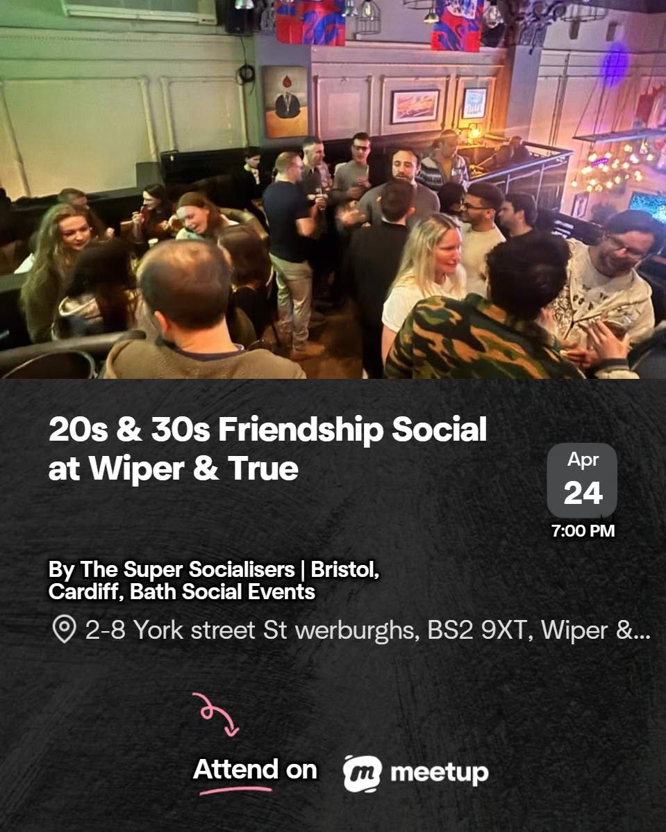 🍻 THE VENUE Wiper & True taproom, 2–8 York Street, St Werburghs, BS2 9XT. Look for the reserved tables and the friendly face at the door.🕕 TIMING 7pm until 11pm - unless people feel like going on later. Leave as early or stay as late as you like.👋 COMING ALONE? About 70% of people do. You won't be the only one.