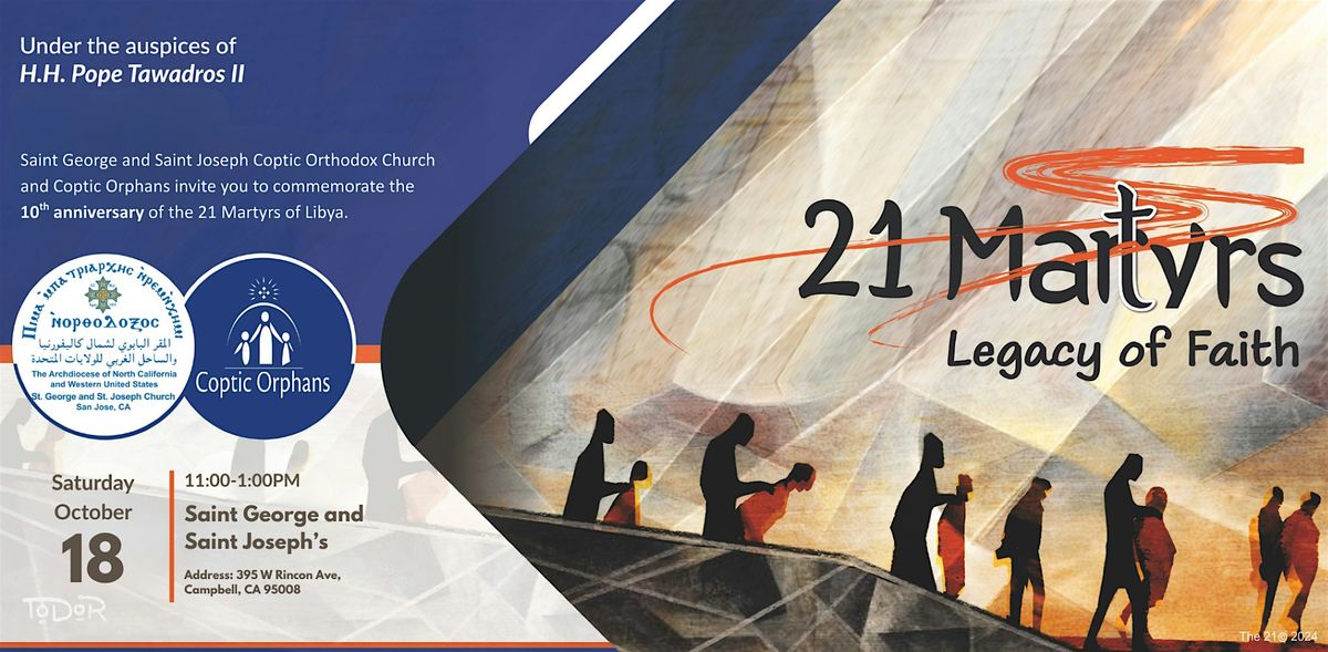 Under the auspices of H.H. Pope Tawadros II, St. George and Saint Joseph Coptic Orthodox Church and Coptic Orphans warmly invite you to a once-in-a-lifetime event honoring the 10th anniversary of The 21 Martyrs of Libya, a celebration of their faith, courage, and enduring legacy.