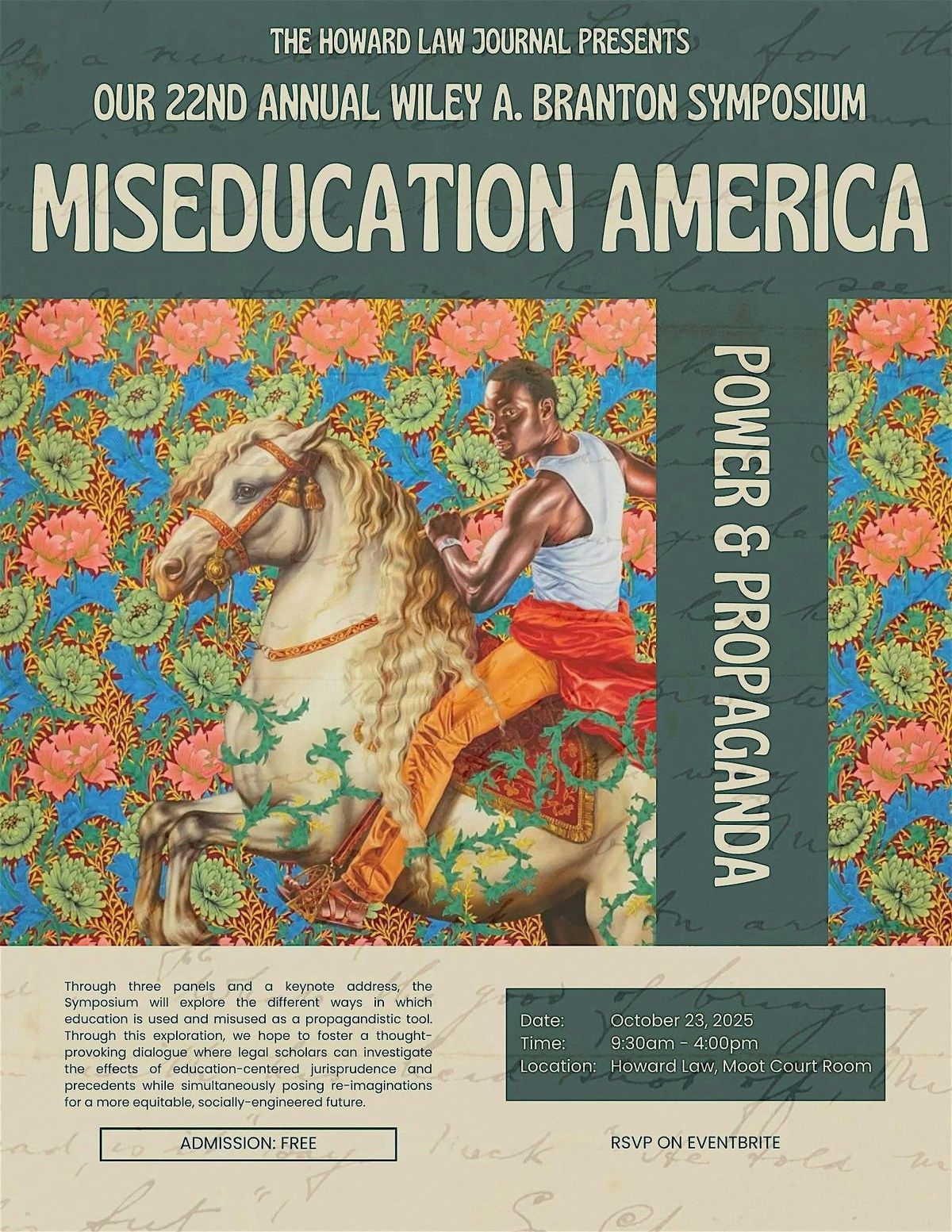 Come join us at the Howard University School of Law in the Damon J. Keith Moot Court Room for a thought-provoking discussion on the state of education and miseducation in America.