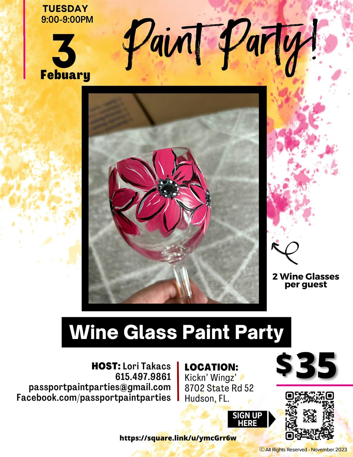 2.3.26 Wine Glass Paint and Sip at Kickn' Wingz'